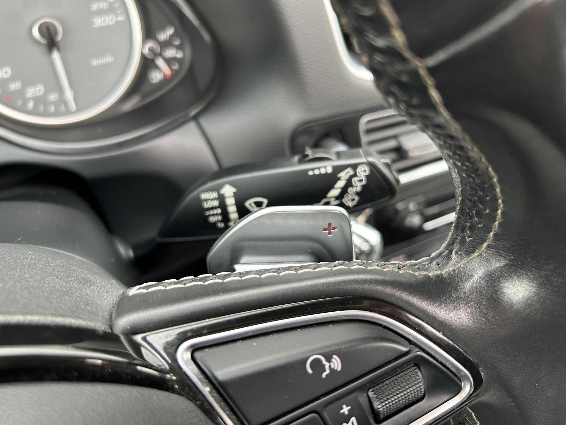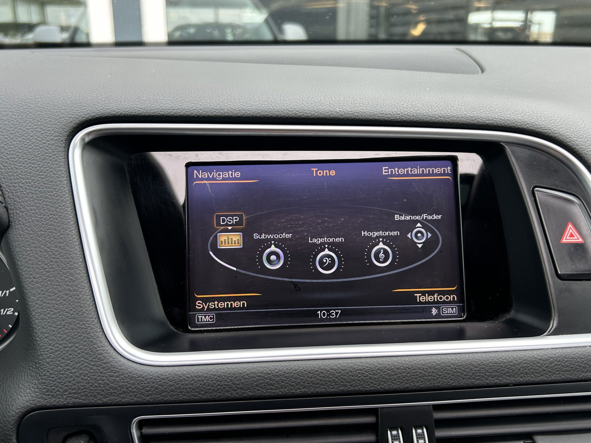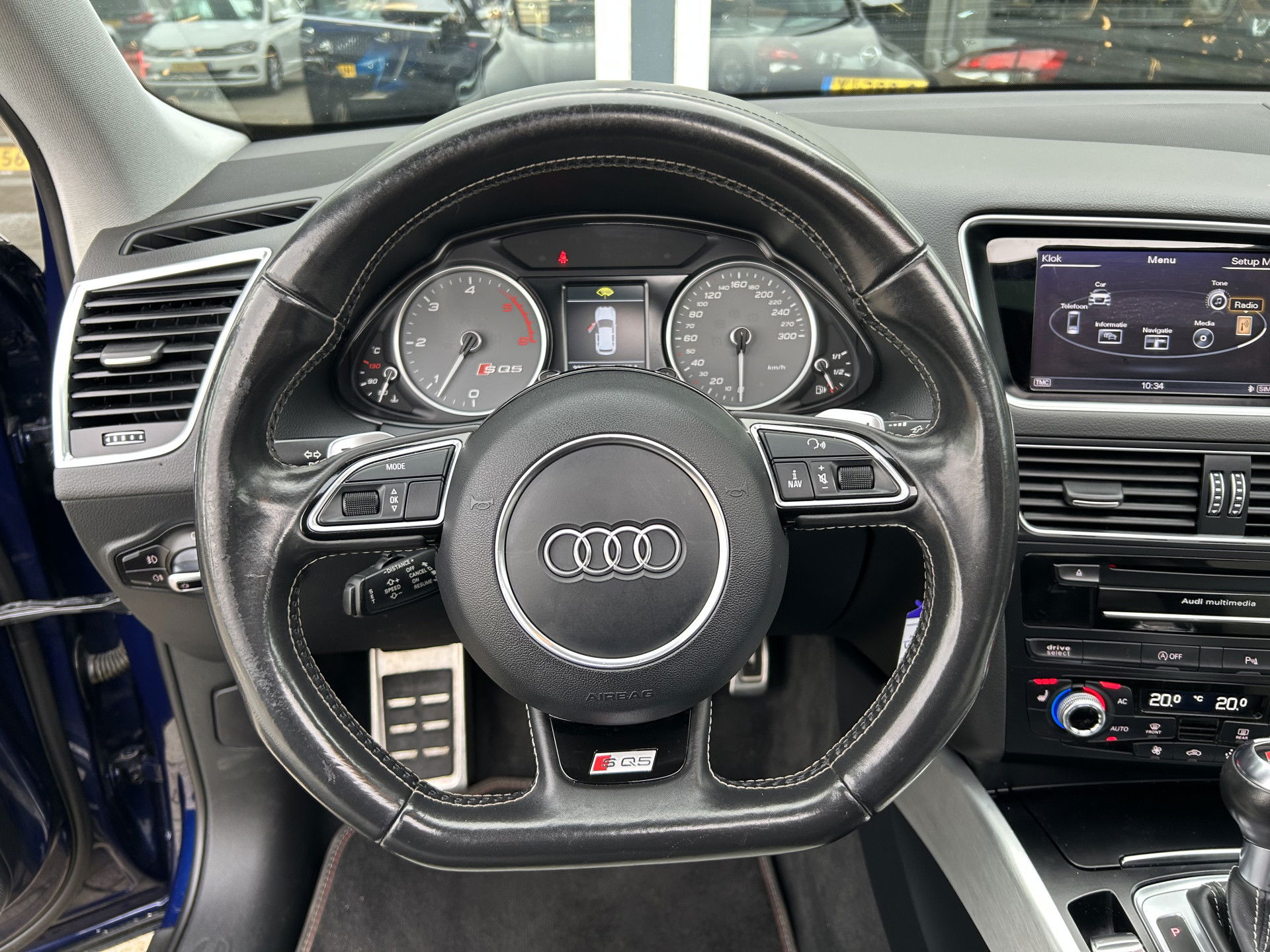 Nooit meer de weg kwijt: daarvoor zorgt het onboard full map navigatiesysteem. Bij de luxe van deze auto hoort ook volautomatische airconditioning. Alle audioknoppen letterlijk onder handbereik: dat kan met de audiobediening op het stuur. Kom-maar-kom-maar...ho! Zo eenvoudig is het voordeel van parkeersensoren. En zo behulpzaam! Om de veiligheid onderweg te verhogen, heeft deze Audi zowel een automatisch inschakelbare verlichting als een regensensor aan boord, zodat hij zelf de verlichting en de ruitenwissers kan inschakelen. Ook cruise control, dvd-systeem, automatisch dimmende binnenspiegel en centrale deurvergrendeling met afstandsbediening horen tot de voorzieningen op deze auto.